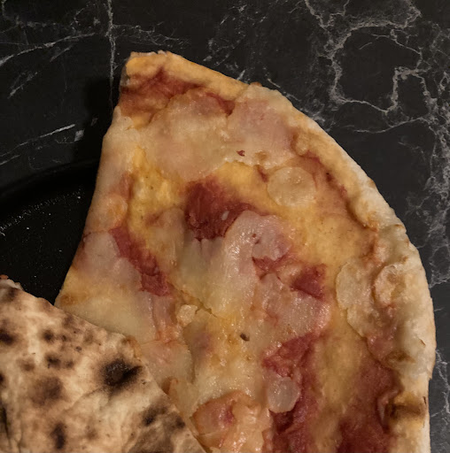 Faccio un appunto sicuramente positivo, l'impasto (circa 340g se ben ricordo), risulta ben strutturato e non è solo bordo, ma è alto (non altissimo) e la pizza al centro non è la classica pizza sottilissima in cui appena alzi casca tutto il condimento, anzi! Rimane tutto su "composto" ed è veramente buona a mio parere. Impasto ben salato e condimento azzeccato per la Pizza che ho scelto io personalmente. Un'altra nota positiva che ho ho notato e che dovrebbe essere così dappertutto (ma a quanto pare non è così) è che la mozzarella di bufala è veramente di bufala e si sente tutto il sapore, rimane bella corposa e saporita, in altri posti non è esattamente così è mi ha piacevolmente sorpreso. Vi dico: se avete tanta fame prendete quella media o quella alta, altrimenti andate su quella bassa. Quella alta riempe e non poco. Questo significa che uscirete soddisfatti senza dover spendere per forza un patrimonio.