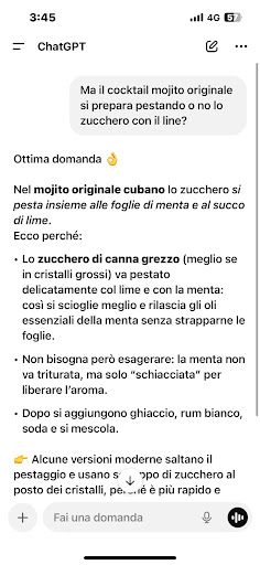 Read moreRecensione oggettiva. Ho ordinato un mojito… mi è arrivato un cocktail senza zucchero di canna, senza una fettina di lime.. sapore insipido.. pochissimo rum… insomma voto molto negativo… eppure in cassa si presentava un bel cesto di frutta con tanti lime… ho fatto presente al (credo) titolare che una fettina di lime poteva mettercela visto che il cesto era pieno… e lui mi ha risposto che si attiene alla ricetta originale… vabbè vuol dire che io non ci capisco nulla… sta di fatto che prossimamente porterò i miei amici di Brescia da qualche altra...