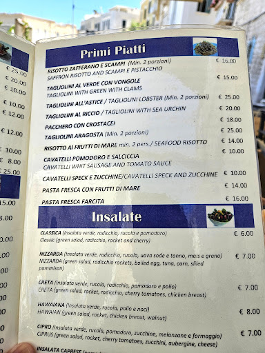 Read moreVery overpriced lunch - just two dishes and water for 34 euros (Summer 2024). The two dishes I ordered - a salted cod fritter dish, and a tagliolini al riccio (sea urchin), were a bit off. The fritter was nice and hot but not a lot of flavor or seasoning. The tagliolini looked luscious and creamy, but the flavor was also off - needed some salt for sure. Wifi is good. Wheelchair accessibility is really good - it's easy to get a table and roll up. The location is right on the riva/boardwalk of old Trani. The staff was average but kind of wanted to push me to order extra like a dessert or coffee....