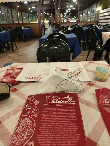 Read morePizza di altissima qualità, ingredienti freschi e genuini. La pizza di Pulcinella è per i veri amanti della cucina napoletana, con una pizza sottile al centro e dal bordo alto intorno. Gli abbinamenti degli ingredienti da poter mettere sulla pizza sono molti, vari e originali. Difficile trovare in zona una pizzeria con un menù così ricco e fantasioso; difficile anche trovare una pizza più buona di questa. Il locale è abbastanza curato, il personale competente. D’estate c’è la possibilità di cenare all’aperto oppure nelle salette interne. I tempi di attesa sono un pò lunghi data la numerosissima affluenza di gente che ogni sera frequenta il locale. In settimana è facile riuscire a trovare subito un tavolo, nel fine settimana è più complicato, ma l’attesa vale tutta quanta. Una volta però entrati nel locale i tempi di attesa sono relativamente brevi, le pizze vengon servite nell’arco di una decina di minuti e il servizio è veramente molto veloce, soprattutto per non aumentare i già lunghi tempi d’attesa esterni al locale. È presente anche un parcheggio interno molto comodo e spazioso. Essendo il locale fuori dal centro abitato e posizionato sulla statale che collega Bisceglie a trani è impossibile trovare posto, se non ai margini della strada. Pertanto il parcheggio interno si presenta come una comodità essenziale e preziosa ai fini di poter usufruire del locale. Il sabato sera non è possibile effettuare prenotazioni data la grande affluenza e il ricambio continuo di tavoli, per cui sarebbe per loro giustamente uno spreco tenere occupato un tavolo con una fila di clienti in attesa. Non è neanche più possibile chiamare per inserirsi in lista d’attesa. È possibile inserirsi in lista d’attesa solo una volta arrivati sul posto. Consiglio vivamente questo posto a tutti coloro i quali volessero assaggiare una pizza molto simile se non identica a quella napoletana, cotta magistralmente nel forno a legna, in una cornice rustica ma al tempo stesso elegante, che si presta molto a tipo di ristorazione...