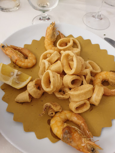Read moreDavvero non concepisco le recensioni da 4 e 5 stelle, ero venuto qui molto fiducioso ma sembra che la maggior parte delle persone che hanno messo 5 stelle non sono mai state in un vero ristorante di pesce. Iniziamo malissimo, il locale è esteso in lungezza per si e nò 3 metri di larghezza, eravamo veramente tutti attaccati (in periodo di covid). Il nostro tavolo il migliore, vicino i bagni e l'entrata ed uscita dei camerieri,un via vai continuo ed occupando con la mia sedia un quarto dell'entrata della porta molto spesso i camerieri si scontravano...non per loro inesperienza eh chiariamolo sono il motivo per cui ho messo la seconda stella, per la loro cordialità e professionalità. Parliamo del cibo, non un gran chè, con molti piatti si sentiva solo l'odore del pesce, il carpaccio di pesce spada e salmone poi non sapeva proprio di niente oltre che freddo di frigo, sembrava di mangiare il sashimi dell all you can eat.... La pasta con i molluschi sciapa, la frittura di anelli di seppia era come una gomma. Il vino poi...ci hanno portato una bottiglia già aperta... non ci vuole un genio a capire che la bottiglia viene riempita... ed era anche di bassa qualità. Tra le note positive, per quanto poche, il pesce crudo era fresco(grazie a dio),il gambero fritto con mandorle squisito davvero ed in fine, il colmo è che la cosa che mi è piaciuta di più sono state delle olive fatte in padella che ci hanno portato nell'attesa del pesce... Per concludere, il conto,molto caro per la qualità e per essere un menù FISSO, avete capito bene, di DOMENICA menù FISSO, 1 antipasto e 3 primi e secondi per poter scegliere, vergognoso. Ci ritornerò?...