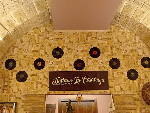 Read moreNon ci tornerei. Ultima serata di vacanze tranesi, decidiamo di cenare alla Trattoria La Casalinga. Prenoto telefonicamente 21.30 in 5. Ci accoglie una gentile signora che ci fa accomodare, dopo aver verificato ogni green pass. Location prometteva bene, rustica e molto "da casa", pochi coperti intimi, profumi della cucina di un tempo. Aspettiamo in attesa di un menù che non arriva così proviamo a chiederlo. Ci viene detto che fanno solo menù fisso: antipasti della casa, carne e dolce 25 euro, acqua/vino inclusi. Non ne eravamo al corrente e poiché la scelta era ricaduta su quel locale per mangiare una seria lasagna di un tempo, chiediamo se è possibile fare anche dei primi, in caso contrario avremmo optato per un altro locale. Ci viene detto di sì, prendiamo quindi antipasti per 4 e 5 primi, totale 100 euro. Punti a favore, antipasti buoni: A detta dei miei amici, gli antipasti della casa, un mix di polpettine, ricottine al miele, funghi e olive fritte, erano tutti molto buoni. Punti decisamente a sfavore: -quando facciamo notare che non eravamo stati informati di questo vincolo del menù fisso la signora sproloquia con "Bè, lei non me l'ha chiesto!", che non commento. -ordinando antipasti per 4 e 5 primi, chiediamo in cassa "se è possibile" conoscere il prezzo di un primo, di modo da sottrarlo al totale e dividere per 4 la restante parte. "Ehm sinceramente non glielo so dire il prezzo del primo, ho fatto così..." (gesticolando come se intendesse dire 'ho fatto un forfettario'). "Ma comunque gli antipasti sono usciti per 5 e non per 4!" Ma chi gliel'ha chiesto? -cacio e pepe imbarazzante: premesso che è il mio piatto preferito, che vivo a Roma e che mi piace provarla ovunque, mi capita a volte di fare recensioni negative sulla qualità del formaggio che viene spacciato per pecorino. In questo caso, azzardo, era quasi gradevole il gusto, ma è stato servito sotto forma di chewing-gum ed è stata la prima volta in assoluto. Se si è trattato di un caso isolato, lo chef/cuoco avrebbe dovuto cestinarlo e rifarlo, se è la prassi, toglietelo dal menù. In linea generale il locale ha del potenziale, e, cacio e pepe a parte, la qualità non è eccessivamente scarsa, ma a mio avviso vanno corretti molti punti con un po'...