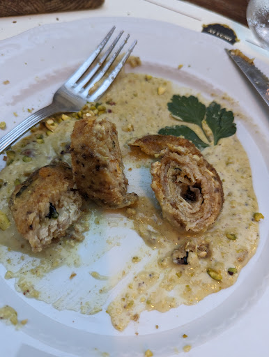 My wife's choice was the Gnocchi in Crema di Pistacchio (all of our main courses were âŹ12), a generous portion of perfectly cooked potato dumplings coated, not soaking, in a mild, creamy, savory crushed pistachio and pana (heavy cream) sauce.