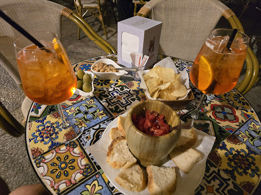 Read moreNos ha encantado 😍😍😍 Es un sitio con un encanto especial. Seguramente será por las chicas que lo llevan, por la música, por la clientela...no lo sé, pero se le nota la magia con solo pasar por al lado. Hemos ido dos veces (puede que mañana vayamos otra vez antes de acabar nuestras vacaciones) a dos horas distintas y las dos nos encantó. El desayuno (la colazione) Tienen variedad de bollería para disfrutar, el café está riquísimo y la granita es increíble. Yo la tomé de almendras y aún la saboreo. En la noche. Nos tomamos una cerveza y un Hugo y, según mi pareja que fue quien se tomó el Hugo, estaba buenísimo. Nos trajeron patatitas fritas y galletitas saladas, ah! Y aceitunas. Todo genial La magia de este rincón es difícil de describir así que si pasáis por Trapani, acordaros de ir a la hora que sea y echar allí un ratito. Ojalá rincones así en todas las...
