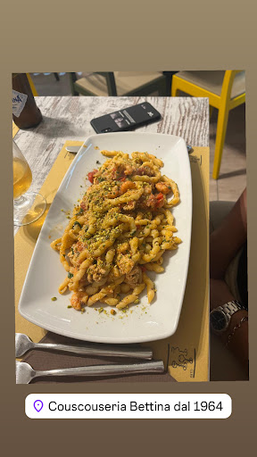 Read moreThis is a great little neighborhood family restaurant kitty corner to Villa Margherita park just a block from the train station. We live on the top floor of the building and the lovely aromas start wafting up around noon. They always have hot prepared lasagna, Couscous, salads and sides if you need quick take out or delivery from Glovo. Dine-in is great with good house wine and our favorite Busiate Trapanese pasta...