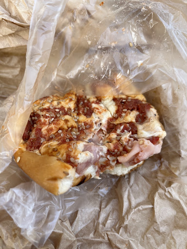 Siamo capitati qui per caso scendendo verso il porto e abbiamo deciso di comprarci il pranzo da portarci in barca. Abbiamo preso un rollo con wurstel abbastanza semplice e leggermente secco, e una fetta di pozza con sugo, prosciutto e sesamo. Aggiungo che, una volta indicata la pizza alla signora dietro il bancone lei mi fa “ottima scelta”. Aperto l’incarto però abbiamo notato che la pizza era costituita principalmente da impasto crudo, con ampie zone bruciate sul fondo, terribile (foto allegata). Se sfornando una pizza si nota che non è cotta bisognerebbe buttarla, o quantomeno avvisare un cliente che te la indica, non dire “ottima scelta” e sbolognarla, incassando per di più 4/5€ per una fetta singola. Sono davvero contrariato, non consiglierei...