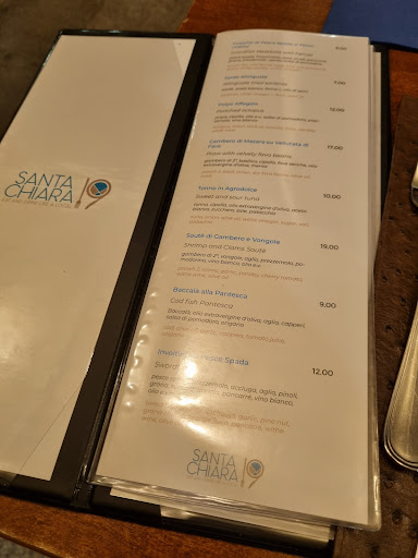Read moreÈ il ristorante romantico di Trapani del quale ci siamo innamorati. 5 stelle non bastano per Peppe lo Chef e Ciccio in sala. Abbiamo cenato più volte da loro e sono sempre riusciti ad offrire dei piatti sublimi con materie prime di eccellenza cucinati con amore e maestria. Abbiamo provato molti piatti in più serate ad esempio le busiate con lo spada zucchine e pistacchi che dire ottime con lo spada morbido e succoso e le zucchine belle sode e i pistacchi croccantini....una delizia. In una serata con un menù eccezionale ho mangiato per la prima volta le busiate con le uova di Riccio, fantastiche. Un sarago sfilettato impanato con agrumi una vera specialità . Ho assaggiato tanto altro che ora non sto a raccontare , vi consiglio vivamente nel provare di persona tutte le prelibatezze. Allego qualche foto. PS dimenticavo il loro benvenuto , appena accomodati al tavolo vi offrono il loro pesto Santa Chiara da gustare con del pane casereccio per ingannare l'attesa. Catia e Sergio