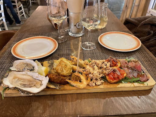Read moreLocale carino, sul sito c'era scritto orario di chiusura: 00.00 Arrivati al ristorante alle 22.45, abbiamo chiesto se potevamo mangiare e ci è stato risposto di sì.. ma non proprio convinto... Preso antipasto di frittelle di gambero e zucchine, abbastanza buono... poi abbiamo diviso un primo:risotto ai frutti di mare. Premetto che un risotto così non l'avevo mai mangiato, buonissimo! Peccato che un guscio di cozza durante la preparazione del piatto si è rotta e noi abbiamo passato tutto il tempo a sputare pezzetti di guscio e a cercarli nel piatto... ma questo purtroppo può succedere... i camerieri invece ci hanno messo una fretta assurda... alle 23.36 ci avevano già portato via anche i bicchieri... il caffè ce l'hanno fatto per piacere.. e appena ci siamo alzati hanno chiuso di corsa... allora io capisco che siete a fine stagione e tutto quello che volete.. ma uno che si fa una vacanza a ottobre non può farci niente se voi non ne potete più della gente.. io faccio il vostro stesso lavoro e mi comporto uguale tutto l'anno.. e se chiudo a mezzanotte, chiudo a mezzanotte.. di certo non metto fretta al cliente... Peccato perché la location e il...