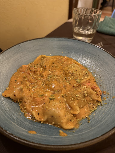 We indulged in an exquisite selection of dishes: seafood pasta, ravioli in a luscious pistachio cream sauce, and perfectly fried seafood—a true culinary delight. The day prior, we sampled busiate pasta with pesto trapanese at another establishment, but it fell short of expectations; the sauce was watery, and the pesto lacked the rich, authentic texture one would hope for. Determined to give this regional specialty another chance, we were thrilled to find the pesto here to be exceptional—creamy, flavorful, and utterly satisfying.