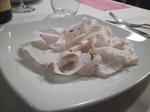Trattoria Consolini, a Travagliato poco distante da Brescia. Locale moderno che offre cucina locale cone la possibilità di un menù con quattro portate oppure a scelta dal menù. Lo abbiamo cercato per assaggare la famosa "travagliatina" impropiamente denominata "Fiorentina" di cavallo che però va prenotata in anticipo. Abbiamo iniziato con antipasto di prosciutto crudo selezionato e lingua, buoni. Due primi, trippa bresciana e ravioli; ma eravamo alla ricerca della carne appunto, per cui abbiamo scelto la "fiorentina" di cavallo non avendo ordinato la travagliatina con patate. Carne tenerissima e gustosa, unico appunto, il piatto non era scaldato e la carne tendeva a raffreddarsi velocemente. Il contorno molto buono. Vino ottimo, un franciacorta satèn, di cui però non ho tenuto memoria. Dolci, cartellette alla crema di mascarpone rhum, buone, fatte in casa, ma la pasta frolla forse...