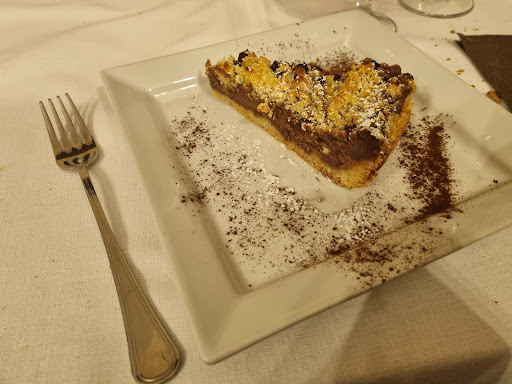 Read morePranzo infrasettimanale, nel complesso siamo stati bene, con qualche appunto tecnico. Io ho preso tortelli con sugo di porcini a parte I tortelli sono artigianali e si vede perché sono diversi tra loro, sicuramente c è anche una mano alle prime armi a farli perché sono fatti malissimo, arrotolati piu che a treccia, ma con l esperienza si può solo migliorare, ripieno di ricotta leggera e pochi spinaci , con il sugo che è molto saporito vanno benissimo. Mio marito ha preso un risotto ai funghi, insipido,il chicco sapeva d acqua,il condimento cercava di migliorare la situazione, molto solido ed eravamo il primo tavolo servito ad inizio servizio Di secondo vitello tonnato che in realtà era tacchino con salsa tonnata di quelle già pronte, vitello arrosto tagliato troppo spesso,un po duro,doveva cuocere un po di piu, le patate arrosto invece davvero ottime, cotte col sugo dell arrosto. Due primi, due secondi con contorno, 2 bottiglie d acqua, 1 caffe, 1 deca euro 38,00