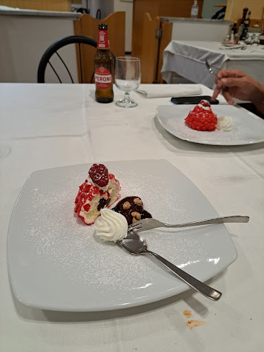 Read moreCercavamo un posto con parcheggio comodo,visto l'auto con le valigie.Davanti i Carabinieri e le Poste col bancomat,era perfetto.Sembrava chiuso,ma chiamando dalla cucina ci hanno accolto,perché sono sempre presenti.Rispetto delle regole covid.Posto non affollato ideale per le famiglie.Non c'è un menù...semplicemente il titolare esaudisce i tuoi desideri.Chiedi e lui prepara...alimenti freschi e ben presentati.Attenzione speciale anche ai ragazzi,difficili nei gusti....Acqua vino,3 Primi, belli abbondanti, 2 Secondi generosi, 3 dolci( ottimo il pan di Spagna al limone) .Caffè .Circa 90 euro.Ci siamo già andati 2 volte.La grigliata di pesce è favolosa....i primi con la salsiccia spettacolari...L'antipasto di palline di pane fritto e zucca,ci ha...