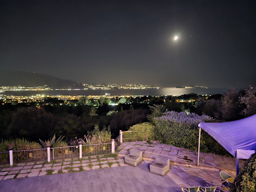 Avrei messo 0 stelle ma 2 le do solo perché ha davvero un bel panorama! Tutto il resto da buttare: personale lentissimo che gioca a fare il simpatico per coprire il servizio da schifo che offrono. Antipasto davvero misero e pessimo: 2 minizeppoline fredde,un crocche industriale,una mini palla di riso salatissima e una mini frittatina che secondo me era vecchia di qualche giorno per quanto faceva schifo. Eravamo 2 adulti e 2 bambini e abbiamo preso 3 pizze di cui 2 praticamente lasciate intere perché non ci sono piaciute. Abbiamo chiesto 1 bottiglia di pepsi e 1 di acqua naturale ma se non andavo io a chiederle non ce le portava nessuno nonostante avessimo già mangiato l'antipasto. Musica live troppo alta per un ambiente così piccolo tanto è vero che era impossibile parlare con la persona che si aveva accanto. Il tavolo vicino al nostro era composto da 4 persone che fumavano come ciminiere nonostante fosse vietato e nessuno ha detto niente. Per finire il conto: il super gentile(finto) proprietario ,sembrando ci facesse un favore,ci dice: ho fatto 15 euro a testa,a posto così! Prezzo eccessivo per 3 pizze,4 mini fritture,una bottiglia d'acqua e 1 pepsi: 60 euro!!!!! Poi ci chiede come mai non abbiamo mangiato 2 su pizze su 3,si consulta con il cameriere e....non ci fa lo sconto neanche di 1 euro!!! Pessimo cibo,pessimo ambiente e pessimo il lato commerciale che proprio non sanno dov'è di casa.evitate...