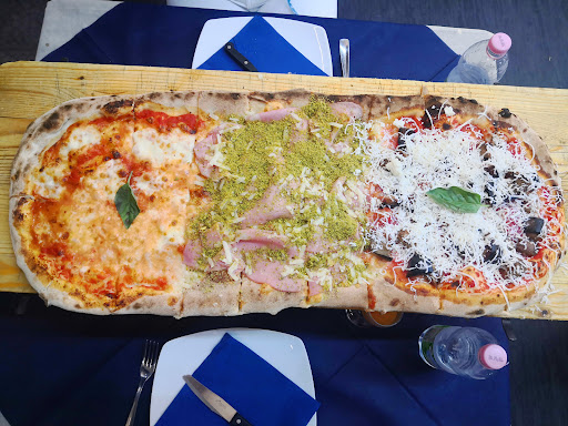 Il punto di forza di questa pizzeria sono le pizza al metro, i lunghi taglieri posizionati su delle basi in ferro battuto al centro tavolo dei commensali fanno la sua parte, che dire, l'impasto è molto digeribile, non pesante, non mi hanno dato durante la notte quel senso di pesantezza. La location è una villa familiare adibita a pizzeria, ho notato che hanno aggiunto talmente tanti tavoli che il personale nn riusciva a muoversi, svolgendo male il servizio ai tavoli, non riuscivano a gestire in tempi brevi le richieste dei clienti. A fine serata la mia impressione è stata giusta, appena svuotata la sala del 30/40% dei clienti ho notato pace e tranquillità, servizio e richieste veloci, comunque il personale è educato. Mi è piaciuto la gestione dei compleanni, la sistemazione del tavolo per la torta, veramente bravi. Ultimo consigli ai gestori, attenzionate i bagni, nn lascio commenti ! ! Se volete provare questa novità e volete gustare questa pizza a metro in tranquillità non andate nel fine settimana. Veramente...