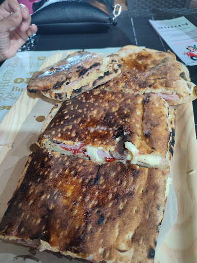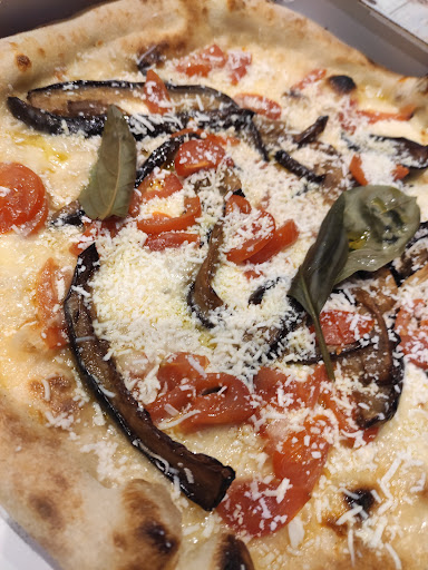 La pizza buona, il condimento sembrava essere di qualità, ma avrei preferito ce ne fosse stato un po' di più. Il rapporto qualità-prezzo è ottimo. Il personale gentile e disponibile. Per quanto riguarda l'ambiente in sé, è quello che è in quanto pizzeria principalmente da asporto, ma nello spazio esterno sono comunque posizionati dei tavolini, in modo tale da permettere la consumazione sul posto a chi la preferisce (anche se un po' scomoda e arrangiata). Possibilità di mangiare pizze senza glutine, sebbene con base precotta. Da tenere a mente, però, che questa opzione è riservata unicamente agli intolleranti, non agli allergici (le pizze vengono cotte nello stesso unico forno, dunque una minima contaminazione di glutine avviene e ciò non la rende totalmente celiaci-friendly). C'è stata poi una cosa che mi ha abbastanza infastidita: il sovrapprezzo di ben 5€ sulla pizza senza glutine! Partiamo dal presupposto che in generale ritengo sbagliato far pagare un sovrapprezzo a chi, per necessità e non per scelta, deve optare per alimenti senza glutine (o senza lattosio e via dicendo), a causa di allergie/intolleranze. In secondo luogo, non concepisco il fatto di pagare così tanto per una pizza che, fondamentalmente, è fatta con una base già pronta e non è nemmeno totalmente gluten free (vista la contaminazione che avviene in forno).