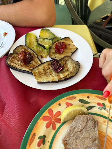 rispondo alla replica del proprietario: in primo luogo, non vedo perché sulla grigliata di verdure io debba mettere la provola che avreste potuto mettere sul crostone visto che ne era presente solo l'ombra. sulle verdure c'erano tracce d'olio, ora o le avete sciacquate, oppure non avete rispettato quello che ho chiesto, ma la cosa peggiore è stata la carne, laddove l'assenza di sale e olio non ha inciso sulla soletta di scarpe che ci avete portato a tavola , decantandola come bistecca di vitellino locale. lnoltre, riguardo il posto immerso nel verde, purtroppo c'era solo sterpaglia e ben poco verde (nemmeno un albero) come visibile dalle foto. Riguardo i cani aggressivi e feroci allego le foto e come sarà visibile sono cani anziani, di piccola taglia, per di più sappi che provengono da cani canili e hanno vissuto anni in gabbia e lei dimostra poco senso Animalista. p.s. seppure fossero stati feroci, le ricordo che noi eravamo gli unici avventori e quindi non avrebbero dato...