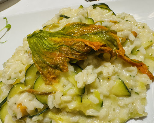 The zucchini risotto was lovely. Divine. The spicy pasta, so so. The beef? Tough, unseasoned, and lacking in flavor. To give it flavor, I cut it up and added it to my salad. Glenn’s ‘pork chop’ was more of a thick ham steak, and very tender and good. The young woman assisting with the cold vegetables / salads was a delight. Our server, the quasi-English speaking wait-staff-guy was dreadful. Service was Trattoria style, and our server was so dreadful, so rude, we decided to skip the last two courses. Know, we live in Italy, speak so-so ‘restaurant’ Italian (better than the waiter spoke English), eat in Italian restaurants several times a month, and by far, here we were profiled as Americans by wait-staff-guy, and as lacking Americans, no less. Profiling happens once in a while and we laugh; it was our laughter, I believe, that made wait-staff-guy all the worse. [I know his name, but we’ll stick with wait-staff-guy to protect...