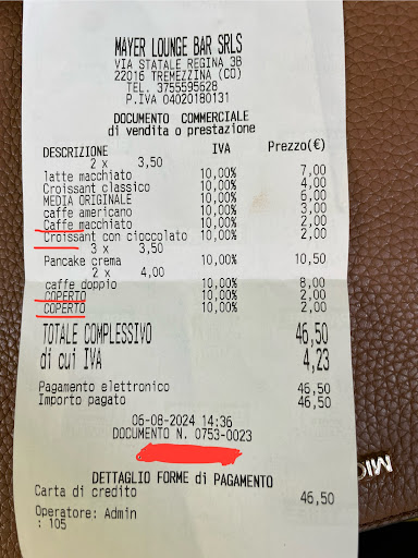 Very nasty and dirty cafe with a super rude cashier. They charged us 2 euro per each cutlery set😳😳😳. It’s a very disappointing cafe with a poor quality of croissant. We ordered three croissants but we received two because they were out of croissant. However, we were charged for three croissants in the bill. We also ordered two latte macchiato but they charged us with one extra caffe macchiato. When we objected, the rude cashier did not accept to change it and talked to us aggressively and impolitely😡😡😡