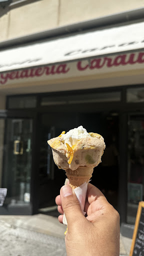 Sara' stata la giornata "no" di una delle gelataie, se non sbaglio anche proprietaria. Scortesia totale, mi sono tirata giù la mascherina mezzo secondo in prossimità dell uscita con porta aperta e nessuno nelle vicinanze per salvare il cono di mia figlia che si stava rovesciando, quando questa signora dall altra parte della gelateria mi urla molto scortesemente di andare fuori perché non si può mangiare dentro, allora le rispondo che stavo solamente tirando su il gelato e avevo già finito. Eh la cortesia, quando finisce sarebbe proprio ora di andarsene in ferie.... Aggiungo inoltre che, visto l uscita frettolosa dalla gelateria non di mia volontà, mi sono accorta all uscita che ho pagato 10,50 € per due coni e tre coppette piccole e il prezzo non mi torna, comunque, va beh....