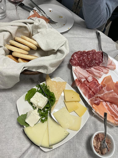 il salume: 4 fette di salame (molto poco buono), 3 fette di mortadella (presumo un errore la mancanza della quarta), 4 di pancetta, 4 di coppa e 4 di prosciutto (gli ultimi 4 salumi, assolutamente normalissimi e niente di che) sono la porzione per DUE persone.