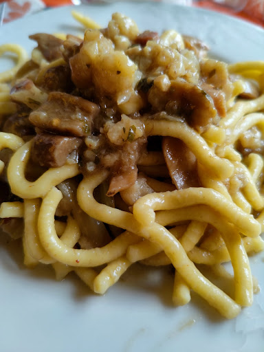 Mi dispiace ma non è stata una bella esperienza.. molte le note negative..abbiamo pranzato al piano superiore.. sala senza un minimo di sottofondo, TV o altro.. uno solo ad occuparsi di un intera sala con inevitabili ritardi,dimenticanze e poca attenzione .. difficile anche farsi notare per delle richieste.. ogni comanda doveva comunicarla al piano di sotto con un citofono posizionato 30 cm sopra la sua testa che lo costringeva a urlare per farsi sentire.. di sicuro poco piacevole .. vino buono, antipasti con taglieri e formaggi buoni,ma formaggio troppo poco per tutti.. primi molto buoni,nulla da dire,ma nota molto dolente su secondi e contorni e dolci... Eravamo 10 abbiamo ordinato 5 porzioni di carne alla brace e salsiccie da dividere,invece di portarle su vassoi già sporzionate e tagliate per essere divise hanno portato 5 piatti con 1 salsiccia e 1 fettina contata x piatto che abbiamo dovuto dividere da noi e spartirle come si fa a casa.. mai visto prima....... Costa di maiale poi dura,asciutta, senza nemmeno l olio a crudo sopra o condimenti pronti in tavola.. a casa sulla piastra la si fa meglio.. poi le patate al forno un piatto enorme.. sproporzionato.. non c'è equilibrio.. dolci.. pochissima scelta e anonimi .. mi dispiace ma non ci siamo proprio.. mancano le basi.. non si sa servire e non può fare uno tutto da solo vestito come a casa.. si deve almeno essere un po' professionali e preparati.. saper servire le portate in modo appropriato.. e poi... Oltre un ora di attesa tra il primo e il secondo.. inconcepibile.. stavamo praticamente facendo merenda.. ce ne stavamo per andare via.. volevamo altra acqua e non sapevamo a chi chiederla,alla fine ho preso una bottiglia da un altro tavolo che erano andati via.. ma si può? Per ogni richiesta attese infinite.. chi arrivava dopo veniva servito prima e noi ad aspettare e a guardarci... mah... ci dispiace perché sono persone che lavorano ma così non va proprio e non ci torneremo di certo.. anche io sto nella ristorazione,certe attenzioni e il servizio vanno fatti come si deve anche in un locale a conduzione familiare.. peccato.. tutti e 10 eravamo molto scontenti del tutto... Prendetela come utili suggerimenti per migliorare perché alla fine non è poi così...