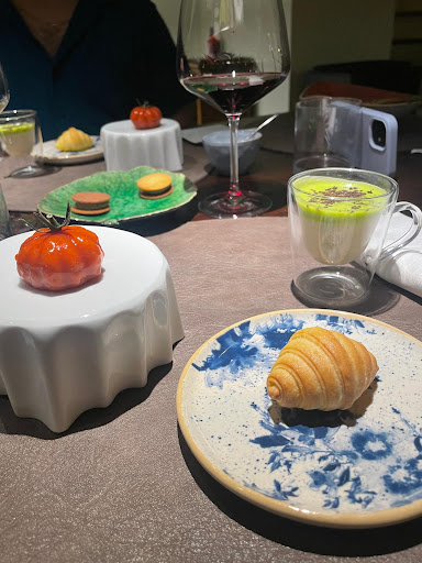 Upon arrival, we were welcomed with warmth and charm, instantly swept up in the magical atmosphere of the restaurant. Nestled in the rolling hills of Umbria, the restaurant exudes rustic elegance, with its beautiful stone walls, soft lighting, and panoramic views of the surrounding countryside. It was like stepping into a fairytale, and the calming setting immediately lifted our spirits.