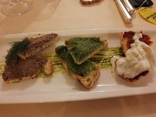 Read moreIn 54 anni di vita terrena non ho MAI e DICO MAI, degustato un cibo così "paradisiaco". Ho scelto un menù degustazione, dall'onestissimo costo di 28,00 Euro, che è partito con un tris di crostini, così delicati e deliziosi, da rendere impossibile metterli in competizione tra loro. Son passato poi ad un primo di gnocchetti con una sorta di cremina di Sagrantino così raffinati, da leccare anche il piatto, per giungere ad un secondo a base di cinghiale in salsa bianca con olive taggiasche e bacche di ginepro, semplicemente DIVINO e per approdare, infine, ad una crema pasticcera aromatizzata con olio e rosmarino e con una punta di kiwi per stemperare i sapori. Il tutto annaffiato con un calice di Sagrantino di Montefalco DOCG per i piatti di "salato" e di passito di Sagrantino per accompagnare il dolce. Un plauso allo chef che, oggettivamente, meriterebbe il premio di miglior Masterchef Italiano (per me anche del mondo in verità) ed un ringraziamento speciale al simpatico e gentilissimo cameriere Maurizio, che ha sapientemente consigliato i piatti da degustare. Ristorante dunque consigliatissimo senza alcuna riserva. 5...