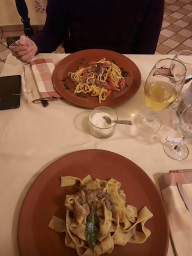 Read moreIo e il mio ragazzo cercavamo una taverna a Trevi dove mangiare bene e piatti tipici. Come antipasto abbiamo preso un tagliere misto con salumi e formaggi (buono/nella media), come primo delle pappardelle al cinghiale (veramente troppo speziate e piccanti) e strangozzi alla spoletina (piatto un po' insolito il prezzemolo ricorda un piatto di mare ma rispecchiano la ricetta originale) e come dessert tiramisù e millefoglie (con letteralmente la stessa crema all'interno,bha ). Nel complessivo esperienza gradevole pure se nelle pappardelle c'erano delle spezie intere, ad esempio molti chiodi di garofano, che non ha assolutamente un buon sapore se masticati. Nota assolutamente di merito alla ragazza molto giovane che ci ha servito, non vorrei sbagliarmi ma si dovrebbe chiamare Eleonora. Lei è stata molto disponibile ed energica, si è scusata per l'inconveniente del primo e mi ha portato una scatolina per portare a casa la restante pasta (cosa che ho apprezzato molto per gli sprechi). I costi sono nella media/costoso quindi circa 20/30 euro a testa. In conclusione lo consiglio nonostante la...