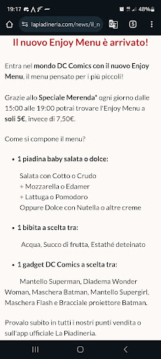 Read moreSul sito parlano di una promozione attiva in tutti i punti vendita, che però in questo punto vendita non applicano. Provo da parecchio ad inviare un reclamo attraverso l'unico form di contatto sul sito ma non funziona mai l'invio della richiesta da qualsiasi device. Mi sembra una società veramente poco seria e non attenta alla clientela. Piadina buona ma non eccezionale, visto il prezzo che hanno mi aspettavo molto di più. Penso non...