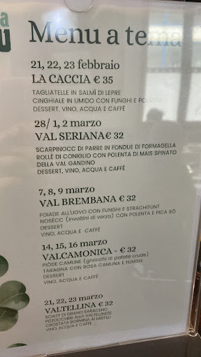 Read morePosto tradizionale dove vige un'atmosfera accogliente, cordiale e familiare. Qui potrete gustare i salumi tipici della tradizione bergamasca (ottimi salame e lardo della tradizione), i casoncelli ben conditi, gustosi risotti ed un ampia scelta di secondi (lo stracotto con polenta è qualcosa di eccezionale). Il tutto servito con cordialità e professionalità. I prezzi sono assolutamente competitivi. Insomma, è il posto ideale per una festosa tavolata tra amici o per una cena di lavoro. Andateci e non ve...