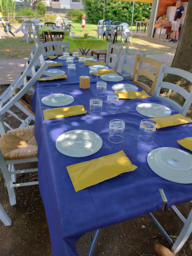 Read moreSi trova all'interno di un parco pubblico per bambini con scivoli, altalene, pista di pattinaggio, attrezzi ginnici e tanto verde. I tavoli sono all'esterno, sia sul prato che sul portico che si chiude con i classici tendoni plastificati, le distanze di sicurezza sono rispettate. I piatti sono molto buoni, specialmente i primi, e della giusta quantità. I prezzi sono nella norma, vantaggiosi per i primi: melone e prosciutto 5€ Pasta 6€ Secondo 6€ + contorno 4€ Bruschette di antipasto 3€ a persona Dolce 5€ La comodità sta nel fatto che i bambini mangiano e vanno a giocare e gli adulti sono liberi di chiacchierare senza paura che capiti...