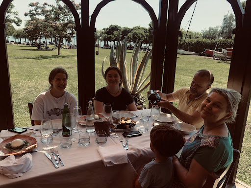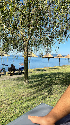 Read moreAbbiamo prenotato 2 ombrelloni con 5 lettini totali e un tavolo per 5 persone per per una domenica di luglio fuori porta. Ho effettuato la prenotazione con 8 giorni di anticipo specificando bene tutti i servizi di cui avevamo bisogno, visto che viaggiamo con una donna incinta. Dopo aver pranzato siamo stati presi in giro dal gestore che ci ha detto di aver dimenticato di prenotare i nostri ombrelloni e con strafottenza ci ha detto di prendere 5 lettini e ci avrebbe trovato un posto all'ombra. Prima ci dice che i lettini ce li offre lui(giusta mossa per farsi perdonare). 5 minuti dopo ci sta facendo pagare i lettini come se niente fosse, così decido di controllare prima la presenza di spazio all'ombra e scopro che non c'è posto all'ombra. 1 ora e mezza di auto con una donna all'ottavo mese per farci prendere in giro, mangiare un pasto medio sul lago e dover tornare subito a casa. Si è poi scoperto che i nostri ombrelloni sono stati affittati ad altri perché alle 12 ancora non eravamo...