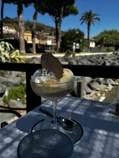 Read moreFacendo una passeggiata nel meraviglioso lungolago di Trevignano Romano è facile farsi strizzare l'occhio da questo locale. All'ingresso si nota immediatamente la cura dell'arredo, per nulla scontato e curato nei minimi dettagli, molto bello. Il tutto invita a sedersi e ad abbandonarsi ad una pausa di qualità. Il personale appare subito cortese, giovane, solare, frizzante.. il dolce servito davvero delizioso, ma.... Manca quel "dettaglio" e le "promesse" delle "premesse" vengono meno: ci sediamo ad un tavolo dove permangono i residui dei clienti precedenti (prontamente pulito, ma bisognava farlo prima); il caffè ci viene servito "insieme" al dolce (suggerisco di chiedere al cliente cosa preferisce al riguardo). Minuzie che comunque inducono a togliere una stella. Il giudizio rimane più che positivo. Il dolce, probabilmente fatto in casa, é stato squisito e il caffè (seppur consumato tiepido) ha svelato una miscela di qualità. Ancora un plauso va al servizio che con leggerezza e simpatia mette immediatamente a proprio agio. Il locale è munito anche di cucina. Il pranzo viene servito tutto l'anno; la cena solo durante il periodo estivo, con possibilità di consumarla sul piccolo e suggestivo molo, praticamente sul lago. Sicuramente torneremo per la cena con la seria intenzione di assegnare la quinta stella e, perché no,...