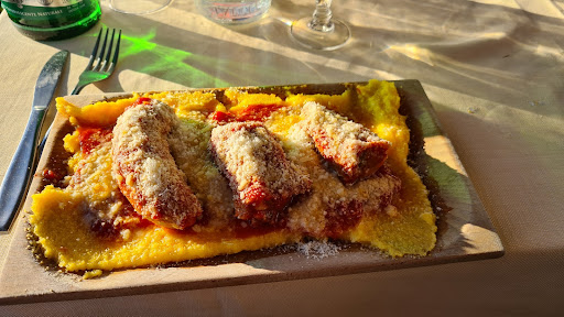 Read moreOttimo locale con vista lago, I tavoli all'aperto sono comunque coperti da una tettoia. Considerando la difficoltà nel trovare il parcheggio, conviene chiedere ai proprietari il posto riservato a chi consuma. Fatta questa piccola considerazione, posso dire che a livello culinario e stata una bella scoperta; ottimo fritto, gustosi primi piatti e buonissimi dolci. Abbiamo iniziato con due ottimi antipasti, una frittuta di Salvia e borragine con tzatziki...ottima, croccante al punto giusto, poi un piatto di culatello e bufala D.O.P. buono il prosciutto ma la bufata era eccezionale. Come primi abbiamo preso un raviolo stracchino e tartufo con scaglie di pecorino di fossa e tartufo scorzone, cottura giusta, giusta la quantità e ben condita, forse il raviolo poteva essere leggermente più cremoso ma è stata una buona scelta. Fuori menù abbiamo preso una crepes fatta in casa ripiena di funghi, salsiccia e Provola...ottima. prima di chiudere con il dolce, abbiamo preso una buonissima caponata in agrodolce, infine abbiamo concluso con due ottimi dolci fatti in casa, per la quale ne vale veramente la pena...una fetta di torta cioccolata e pera ed una cheesecake alla nutella. Complimenti davvero alla signora Rita. Più che ottimo il rapporto qualità prezzo e...