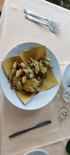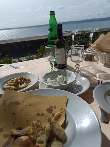 Situata nella parte storica di Trevignano Romano, lungo la provinciale che fa il giro del lago, dispone di un gazebo all'esterno proprio a ridosso della riva, presenta un ambiente molto accogliente ed è gestita da personale sempre cortese, professionale e prodigo di suggerimenti. L'utilizzo di materia prima di qualità e la maestria e l'accuratezza delle mani che preparano le pietanze concorrono alla realizzazione di piatti stagionali molto buoni, prevalentemente appartenenti alla trazione culinaria locale. Con davanti agli occhi lo splendido spettacolo del lago luccicante di sole e, sulla sponda opposta, delle cittadine di Bracciano e Anguillara, abbiamo iniziato con un antipasto di borraggine e salvia in pastella, accompagnate da salsa tzatziki. Abbiamo poi preso degli straordinari ravioli di castagne e ricotta in salsa di castagne e zucca e degli ottimi ravioli allo stracchino con tartufo e pecorino ... entrambi veramente molto molto buoni! Come secondi abbiamo consumato una entrecôte alla griglia di gran livello, cotta proprio a puntino, ed una saporitissima anguilla alla cacciatora, seguite dalle tradizionali puntarelle come contorno. Abbiamo apprezzato molto la crostata con ricotta e marmellata di mirtilli e anche il vino della cantina Castello di Torre in Pietra. Purtroppo, non siamo stati abbastanza lesti da fotografare i primi integri e ... addirittura i secondi sono finiti prima di essere inquadrati! Ci è piaciuto...