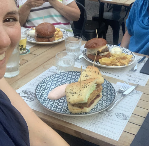Came here twice for dinner. Stunning location right by the canal. Lovely atmosphere: as the sun goes down the pop lovely lights on the table. Food is nice; they have vegetarian options which they can turn into vegan recipes too. Best onion rings we ever had! 🧅 🍟 highly recommend those! Veggie focaccia is also very nice. The veggie burgher a bit on the greasy side; i couldn’t finish it. Needs to have a side of salad instead of chips.