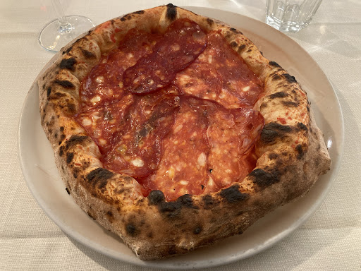 Piqued by this pizzeria, I went in. It was claimed as authentic Neapolitan pizza, and while I do not argue with the claim, I do argue on the quality. Simply put, it is a good pizza but miles away from the taste that it has in Naples or, even in good pizzerias in most European cities. The dough lacked flavours (I have a levain at home for cooking pizza myself and know how a flavoured one should taste like). Nor was salty enough, but that is debatable. Pizza could have been cooked a tad longer and had slightly more oil on it. The tomato sauce disappeared under the ricotta, which was not even that flavorful. For the prices asked, I had better pizzas in Warsaw or Krakow, without any claim of authenticity.