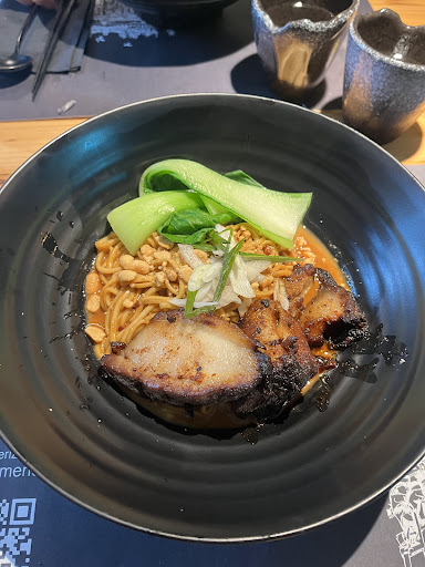 The restaurant looks cool with dark light decorations, the utensils are nice though. The dishes looked appealing, the century egg with tofu and the ribs are tasty. However, we ordered the dragon cucumber salad but it came out differently from the picture and from what we had expected. They didn’t anticipate that change. We were excited to eat their iconic Humian which is noodles with chasiu. But it was unacceptably salty which we couldn’t eat, we told the waitress about it but she came back explaining that it was the chef’s recipe and they couldn’t fix it. She didn’t even willingly ask if we would want to replace it with another dish until we asked for it. It was not that our taste was problematic as I observed a couple sitting next to us had the same opinion but they...