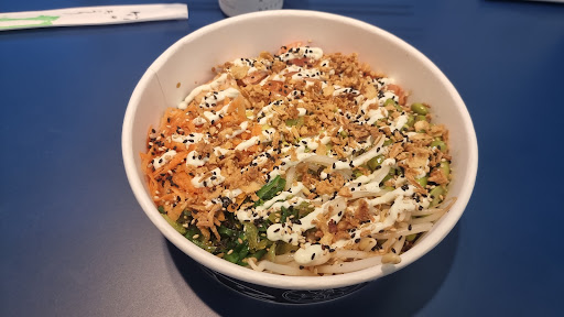 Read morePiacevole nuovo negozio di Pokè vicino a casa, che ha dei pregi e alcune cose da migliorare. Tutti gli ingredienti mangiati erano buoni e di un ottima consistenza, il prezzo corretto e il personale molto gentile e disponibile. Il locale è nuovo, luminoso e molto pulito. Ci sono alcune cose da migliorare: il fatto che il contenitore abbia il fondo piatto rende poco facile mangiarlo, ma è molto apprezzato che sia fatto in carta e non in plastica. Non sono presenti degli "abbinamenti prestabiliti" e quindi alcuni clienti potrebbero essere spiazzati a non avere già un poké pronto ma doverselo costruire...