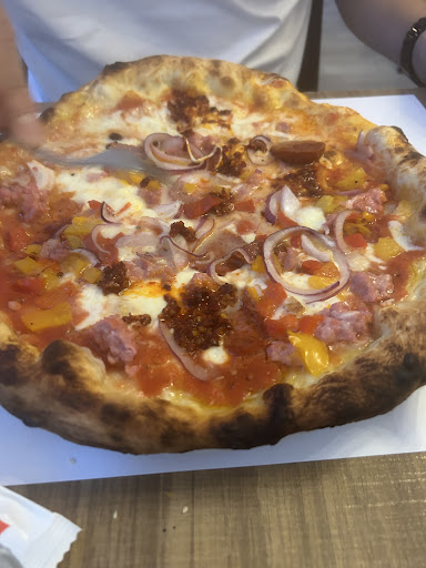 Read moreSono state ordinate 2 pizze: una fumé con provola affumicata porcini e speck e una porcini e porchetta, una cocacola media ed una bottiglia d'acqua naturale temperatura ambiente. Sono arrivate cocacola e acqua fresca, fresca perché era stato caricato da poco il frigo. Arriva la prima pizza, porcini e porchetta con un retro gusto di affumicato, dopo 10 minuti abbondanti arriva anche la seconda pizza con porcini speck e mozzarella buttata lì a freddo (ribadisco che fumé non prevede aggiunta di bufala, NESSUNO ha ordinato bufala e a dirla tutta, la cosa pervenuta non sembrava bufala) senza provola, viene fatto notare la cosa al cameriere che prontamente si scusa e propone la sostituzione, ma oramai la prima pizza è al termine e nonostante questi disguidi, tutto sommato, gli ingredienti sono buoni. Altro punto a sfavore, quando in una sala da più tavoli ce ne sta uno con persone volgari e rumorose, sarebbe cosa giusta da parte del personale, invitare i soggetti a moderare i toni e i termini per non recare disturbo al resto dei commensali perché cenare con gente che bestemmia ad alta voce...