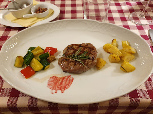 Read moreAbbiamo cenato in questa trattoria un sabato sera, abbiamo prenotato facilmente quando altri ristoranti però in centro a Treviso erano già strapieni. Siamo venuti qui principalmente per degustare la carne, molti di noi hanno anche preso un risotto al radicchio come primo, ( molto buono e solo 10 euro) mentre come carne io ho preso il filetto di scottona ( vedi foto) altri la tagliata edun altro la fiorentina ( da 5 euro ad etto), la carne era di buona qualità pur non arrivando all eccellenza ma per i prezzi ( 24 il filetto 18 la tagliata) la quantità era decisamente esigua,mi aspettavo un piatto più ricco , titolari e cameriere gentili ma decisamente disorganizzati nelle comande si muovevano su e giù fra i tavoli in cosfusione, ci hanno regalato Un porzione di risotto dato che lo avevano fatto in più ( gentilezza gradita) ma per esempio hanno sparecchiato le posate dopo il primo e non le hanno servite nel secondo quindi mi sono trovato la carne sul piatto, ma senza forchetta. Buona trattoria per farsi una buona mangiata ma c'è da lavorare soprattutto come...