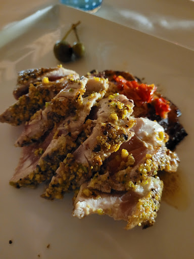 Read moreLa qualità della materia prima è ottima e per questo non posso abbassare troppo la valutazione, ma il locale, centralissimo, è migliorabile sotto molti aspetti. Innanzitutto il servizio è estremamente lento: tra primo e secondo sono trascorsi 45 minuti nonostante fosse un mercoledì sera abbastanza tranquillo e avessimo ordinato tutto insieme al nostro arrivo. Nell'antipasto, la tavolozza dell'adriatico al vapore, abbiamo trovato qualche spina e un paio di intestini nei gamberi. Ottima la tagliata di tonno in crosta, buoni i tagliolini al limone e capesante, decisamente triste il branzino servito con 3 tocchetti di patata bollita. Un plus va riconosciuto al baccalà con gazpacho, offerto a tutti i commensali, e al dolce. I prezzi sono coerenti con quanto proposto da un ristorante di pesce di un certo livello (non ci sono piatti...