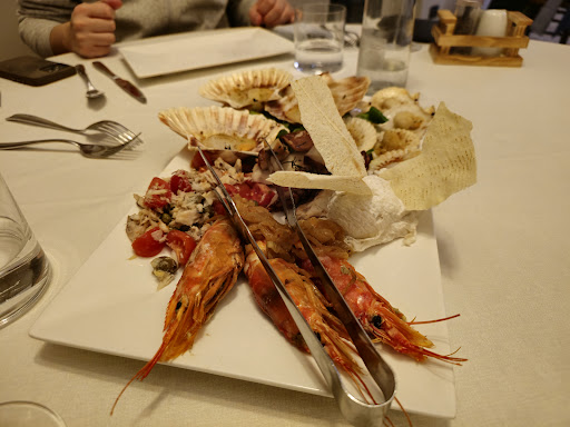 Fantastic seafood in a lovely restaurant. We went for Sunday lunch and as it was a warm day we opted for the cooler indoors, although the outside terrace looked inviting too. Really friendly waiter who talked us through the menu, recommending the branzino which was the freshest of all. We asked for the house special (platter of uncooked fish) to share, and it was delicious, at least eight varieties. Washed down with a new prosecco we'd not tried before, and all for a very reasonable price. Walked it off with a stroll around the neighbouring park! Highly recommend, next to the bus stop if you're coming from Treviso, or five minutes from the motorway for...