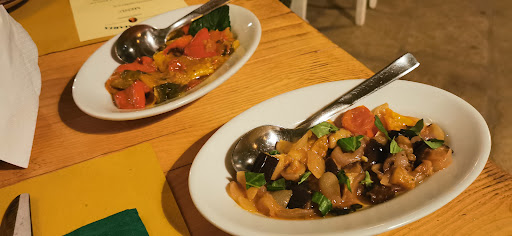 Abbiamo ordinato antipasti, due primi e un secondo in due. Gli antipasti ci sono stati spiegati benissimo nonostante fossero scritti sul menù in dialetto locale. Ho mangiato le pettole più buone di sempre (e sono tarantino: superate le "splendide pettole del Borgo Antico di Taranto vecchia"), accompagnate da delle polpette al sugo indescrivibili. Buonissimi anche gli altri antipasti: caponata, peperoni con mollica di pane, polpette di carne e di melanzane, farro con verdure. Da sottolineare che tutta la verdura è coltivata direttamente dalla proprietà.