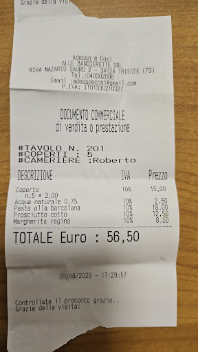 Read moreA very disappointing experience. The staff was inattentive and the service extremely slow — even by Italian standards. The setting felt cheap, with plastic chairs and disposable tablecloths.