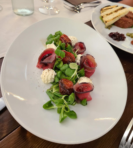 Read moreHo cenato in questo posto scoperto totalmente a caso; ovviamente è necessaria e consigliata la prenotazione in quanto i posti a sedere all’interno sono pochi e selezionati infatti si punta sicuramente sulla qualità piuttosto che sulla quantità. La location mi ha subito stupito per il silenzio, la pace, la pulizia e l’organizzazione e dei tavoli che era davvero molto interessante. I servizi anch’essi molto puliti e sistemati e tra questi e la sala c’è una porta di separazione dei due ambienti, oltre che alla porta dei servizi stessi, che non è sempre presente in altri locali, quindi da notare. Abbiamo aperto le danze con dei piatti da menù che ci ispiravano parecchio e a ciò, si è aggiunta la tanta professionalità dei camerieri che sono stati oltre che gentilissimi e sempre col sorriso, sempre pronti a soddisfare ogni nostra richiesta e a consigliarci perfettamente. Come antipasto abbiamo preso due tartare di manzo tagliata al coltello al naturale (poteva essere aggiunto un uovo di quaglia o del tartufo nero) e accanto aveva del burro, dei crostini di pane caldo e arrostito, e delle guarnizioni: senape, capperi tritati, olive tritate, cipolle rosse dolci e peperoncino dolce, che si sposavano alla perfezione con la tartare sia spalmata sul crostino con base di burro, sia sola essa con qualche guarnizione. La carne era veramente delicata e tenera che si scioglieva in bocca senza neanche un pezzettino più duro degli altri, omogenea e di bel colore quindi posso confermare che era di qualità molto alta. Anche le guarnizioni avevano un sapore molto deciso e particolare sopratutto le cipolle rosse che sposavano perfettamente la carne cruda. Abbiamo poi preferito dei secondi: una tagliata di black angus di cottura al sangue-media e un filetto di manzo avvolto da lardo di patanegra e tartufo nero su un letto di patate viola e una fonduta di Montasio. La tagliata era spettacolare, morbida il giusto, cotta benissimo e soprattutto rispecchiava alla perfezione il livello di cottura che desideravo, non sempre si azzecca; la carne era tenera, si scioglieva in bocca e aveva un sapore tale da farti apprezzare ogni pezzo, sempre di più. Il filetto invece, anch’esso era molto buono anche se l’avevo chiesto di media cottura, mi è arrivato leggermente troppo al sangue ma era comunque molto buono. L’abbinamento col lardo di patanegra e col tartufo era eccellente, il lardo dava quel sapore sapido e giusto che probabilmente senza, non avrebbe avuto la stessa bontà. Nota d’attenzione anche sulle patate viola su cui non si fa tanto caso, magari, invece erano davvero ottime. Abbiamo accompagnato la carne con dell’ottimo merlot che inizialmente mi è stato servito leggermente troppo caldo, e che dunque ho richiesto un po’ più fresco. Abbiamo terminato con un dolce che si chiamava “le ganache” che come idea non era niente male, però non mi aspettavo fosse scomposto, infatti c’erano delle porzioni di cioccolato bianco e al latte e un biscotto di cioccolato fondente al caffè, possiamo dire che mancava della stessa raffinatezza del resto del menù. L’abbinamento di sapori non era male ma la forma l’avrei preferita diversa, magari come un dolce a più strati. Il prezzo è stato proporzionale a ciò che abbiamo mangiato: due bottiglie d’acqua, un calice di vino, due tartare, due secondi, un contorno, un dolce e un caffè, tutto €103. Ci ritornerò volentieri, 5 stelle...