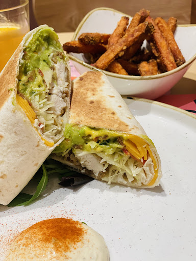 Their menu has a perfect balance of sweet and savory options, so whether you’re in the mood for pancakes, waffles, or something hearty like eggs, chicken, and burritos, you’ll find something you love. Personally, I really recommend the crunchy chicken burrito — it’s light, flavorful, and perfectly wrapped. The sweet potato fries are another highlight: crispy on the outside, soft inside, and simply delicious.