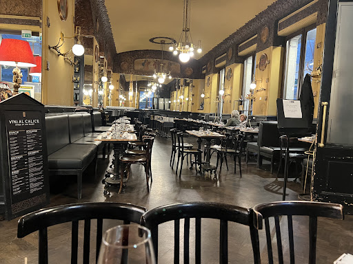 • Founded on 3 January 1914 • Art Nouveau style - ornate stuccoes, brass lamps, rich woodwork, marble tables, and vintage caféscape. Caffè San Marco is a historic and literary icon in Trieste. • The interior features painted allegories of rivers, coffee leaves, nude medallions, lion-paw iron table legs, and elaborate stuccoed ceilings—still largely original and preserved • In 1915, Austro-Hungarian soldiers attacked and destroyed parts of the café. However, much of the décor survived. • Literary luminaries like Italo Svevo, James Joyce, & Umberto Saba, have been regulars • Recognized as a Historic Café of Italy since 2005. • Functions as a café, restaurant, pastry shop, enoteca, bookstore, and cultural venue, & event venue. • Cuisine blends Austrian, Slavic, and Italian traditions. • Drinks include a house-blend of Arabica/Robusta roasted locally, fine Eastern European wines, and a strong coffee tradition central to Trieste’s identity.