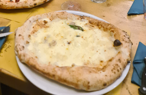 Ordered the truffle porcini mushroom pizza sans ham (plus anchovies) with house red wine for 17€. It was outstanding, I wished there was a bit more kick to it with some added chilis but of course no one came to ask if I needed anything else. I couldn't even track down a server by this point, sadly. Don't let sparse service ruin good food, I told myself. When there was service, it was good though. Gentleman who took my order was kind and patient but I didn't see him the rest of the night.
