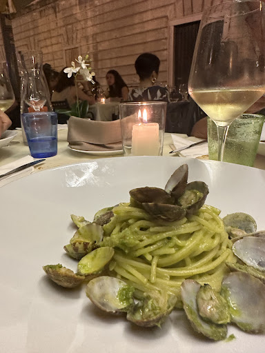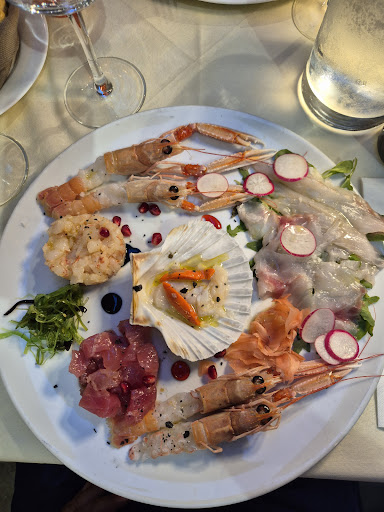 Nice osteria with a pleasant terrace, where to eat fresh local fish, with space for improvement. Scallops were a bit dry, with too much breadcrumbs. Crudités were very good, especially langoustines. Spaghetti with clams were excellent: pasta was thick and perfectly cooked while the sauce of the clams was spectacular. Fried small fish were very good with excellent fresh squids. However, they were accompanied wotj fried potatoes instead of vegetables, making them heavier. All in all a greet experience to be repeated, also to taste the large wine list they have...